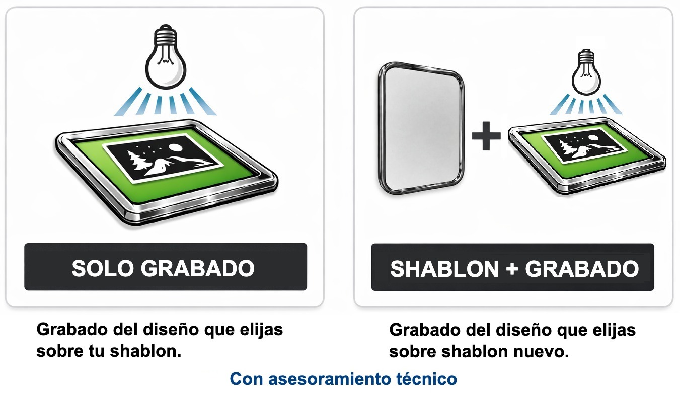 Nosotros los grabamos con precisión técnica para que estampes sin contratiempos.